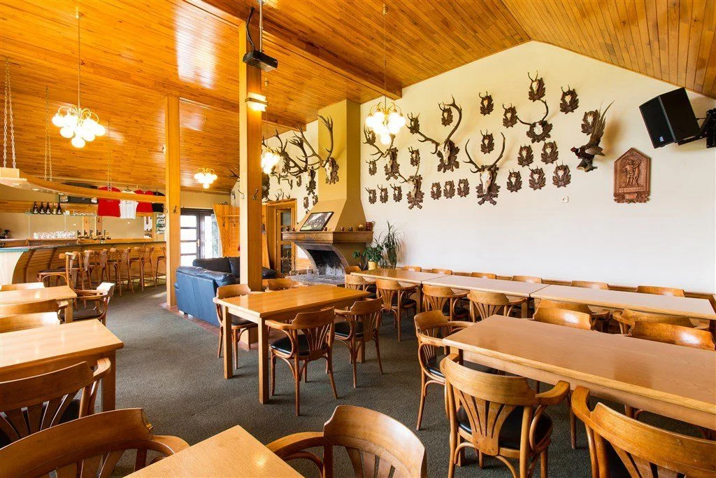 ORLÍK (100 m): restaurace s krbem a barem, lovecký interiér, terasa, relax/herní kouty, velké dětské hřiště, úschovna kol i lyží.
