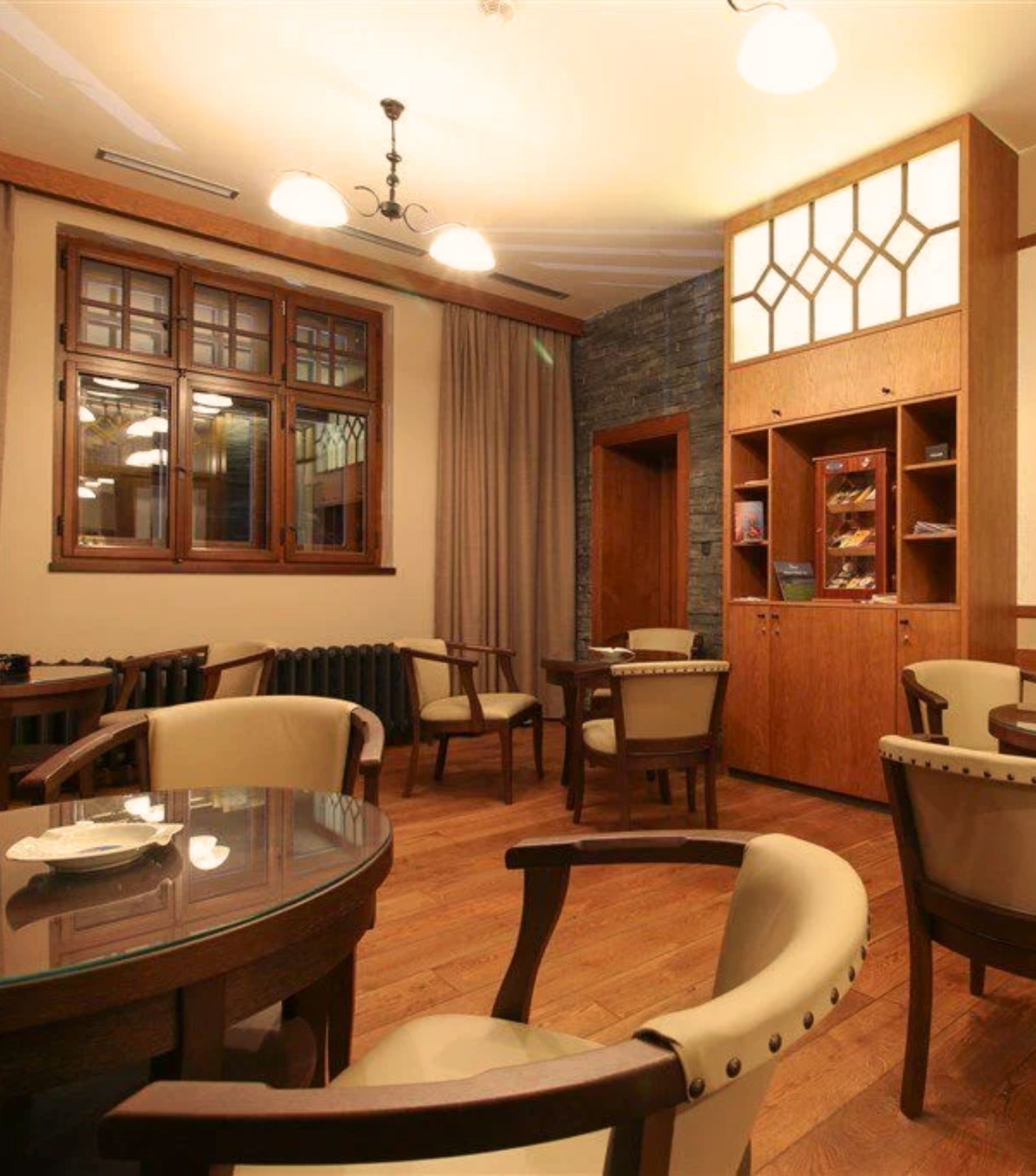 FRANZ: prvorepublikový styl, restaurace (místní + světová), tlakový kuřácký salonek s doutníky, terasa, Wellness & Franzovy lázně, školící prostory.