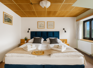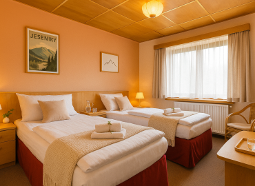 Větší soukromí a komfort. Oddělené zóny na spaní/relax, ideální na delší pobyt. Výhled na louky a lesy. V ceně je i Welcome Box ‘Ochutnej Jeseníky’ – malé lokální dobroty na uvítanou. Skvělá snídaně v ceně – podáváme v restauraci hotelu Franz, necelých 100 m od Orlíku.