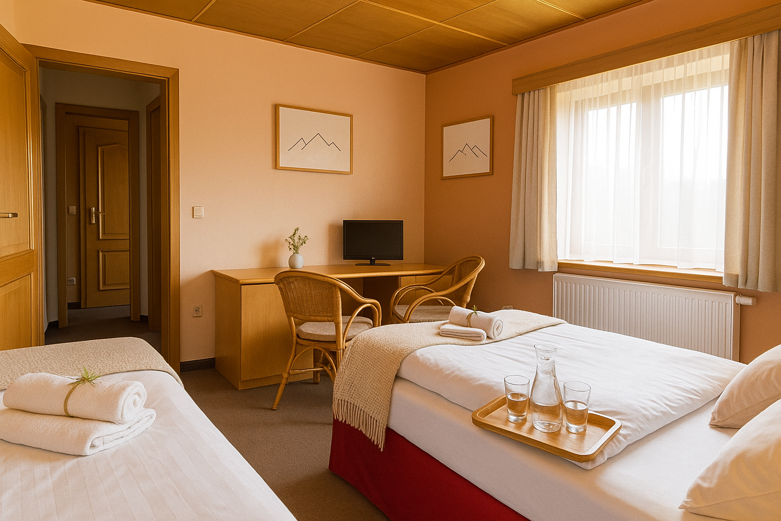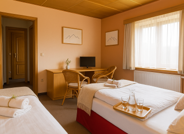 - Příslušenství: free wi-fi, hotelová kosmetika, sprchový kout, úložné prostory, vysoušeč vlasů