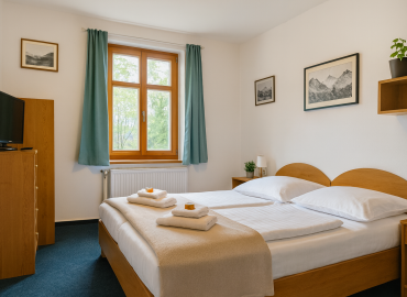 Větší dvoulůžkový pokoj s výhledem na louky a hřebeny Jeseníků. Pohodlná Queen postel a světlý interiér pro komfortní pobyt. Po příjezdu na vás čeká Welcome Box s likérem, čajem a dobrotami od místních. Bohatá snídaně v naší restauraci je již zahrnuta v ceně.