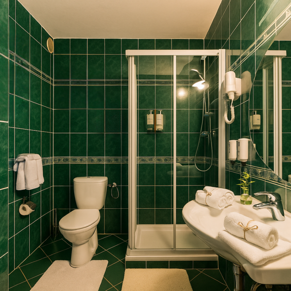 Každý pokoj má soukromou koupelnu se sprchou, fén, úložné prostory a hotelovou kosmetiku (šampon, sprchový gel a tělové mléko). Varnou konvici rádi připravíme na vyžádání.